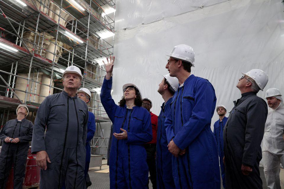 Bộ trưởng Văn hóa Pháp Rima Abdul Malak thị sát công trình hồi cuối tháng 7/2022. Ảnh: Reuters Ngay sau vụ hỏa hoạn kinh hoàng, Tổng thống Pháp Emmanuel Macron cũng đã cam kết sẽ cố gắng hoàn thành công tác trùng tu di tích này vào năm 2024, khi Pháp đăng cai Thế vận hội Olympic.
