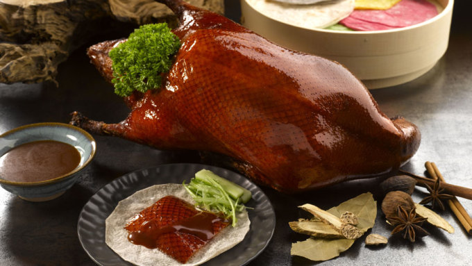 Vịt quay Bắc Kinh hấp dẫn nhờ lớp da giòn, có màu sắc đẹp mắt. Ảnh: Asia 361 Cơm vịt