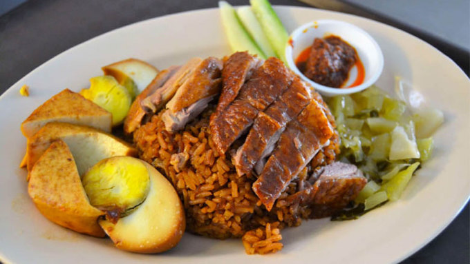 Đây là một món ăn truyền thống của người dân Singapore, gồm cơm trắng và vịt quay hoặc hầm nhừ. Nếu là vịt quay, đầu bếp sẽ nhồi vào trong con vịt các loại gia vị như quế, gừng, hoa hồi... rồi nướng cho đến khi bì giòn tan. Nếu là vịt om, món ăn sẽ được nấu chín, hầm nhừ với nước dùng kèm nhiều gia vị.