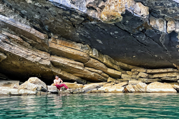 Nhóm Hải ấn tượng với thạch nhũ được hình thành lâu năm bên trong hang Bí mật.Sau 4 tiếng leo núi, cả nhóm nghỉ ngơi tại khu trại cạnh bờ suối. Ở đây, nước rất trong mát, có nhiều cá. Sau một chặng đường leo dốc và đi bộ 13 km, cả nhóm mệt lả và lao nhanh xuống dòng nước ngâm mình thỏa thích. Hải cho biết, đây là ngày trekking dài nhưng dễ thở nhất.