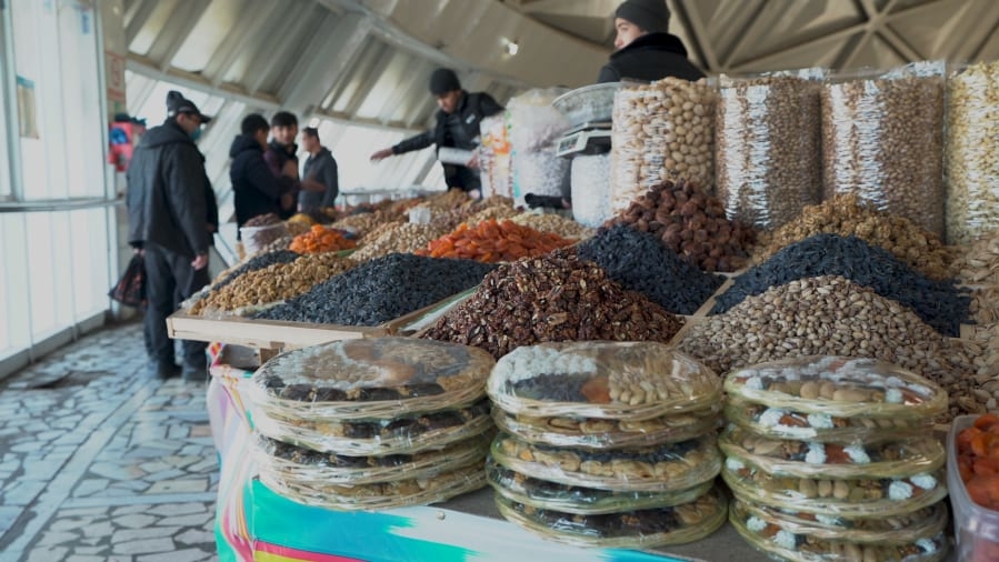 Tại đây bán đủ thứ từ thịt đến phomai, một món rất đặc trưng và phổ biến tại quốc gia này. Đừng quên thử các loại rau củ muối địa phương và các loại hạt. Tại đây, bạn cũng có thể thưởng thức kim chi và những món ngon của Hàn Quốc do cư dân Hàn định cư và phát triển mạnh ở Tashkent. Ảnh: James Stacey/CNN