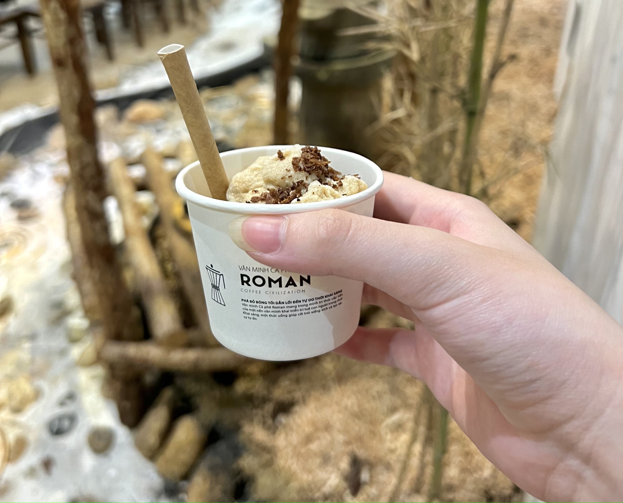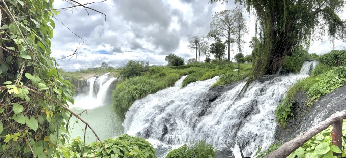 Con thác tựa mình bên vách đá sừng sững, đằng xa là bầu trời xanh tạo nên một bức tranh thuỷ mặc. Bảo tàng Thế giới cà phê