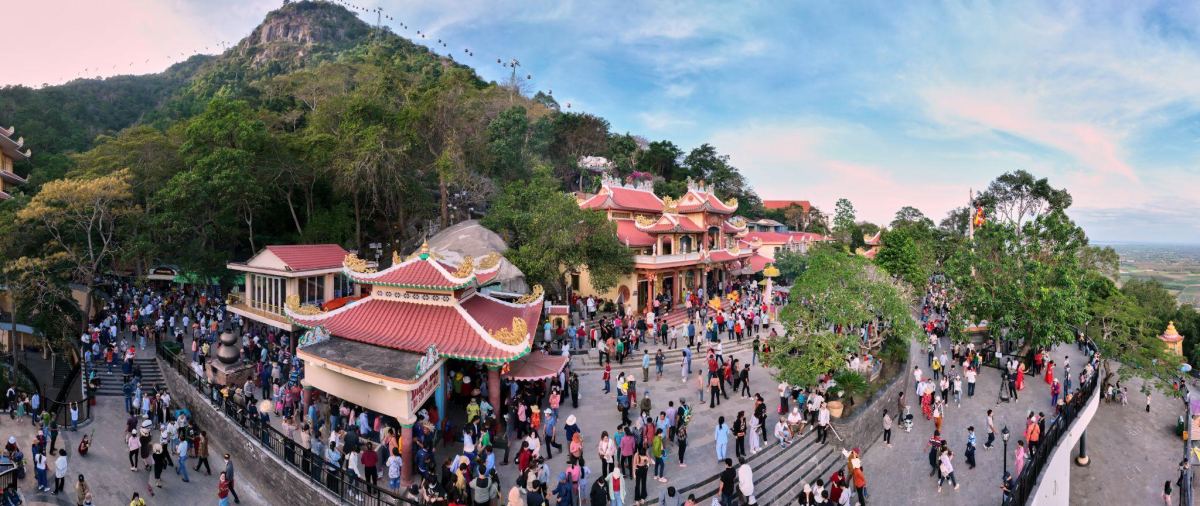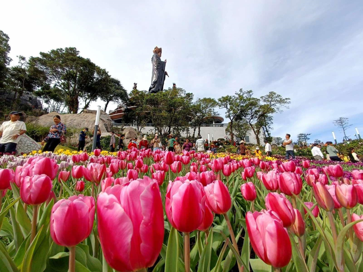 Trong 5 ngày Tết, 456.000 lượt khách đến chùa Bà và quần thể tâm linh trên đỉnh núi. Rất nhiều tiểu cảnh, đại cảnh được trưng bày tại đây như "cổng trời" tết bằng hoa lá, gia đình ong, các bức tượng Phật bên lối đi, và hàng trăm nghìn bông hoa tulip đua nở thu hút du khách đến đây thưởng ngoạn, chụp ảnh lưu niệm.