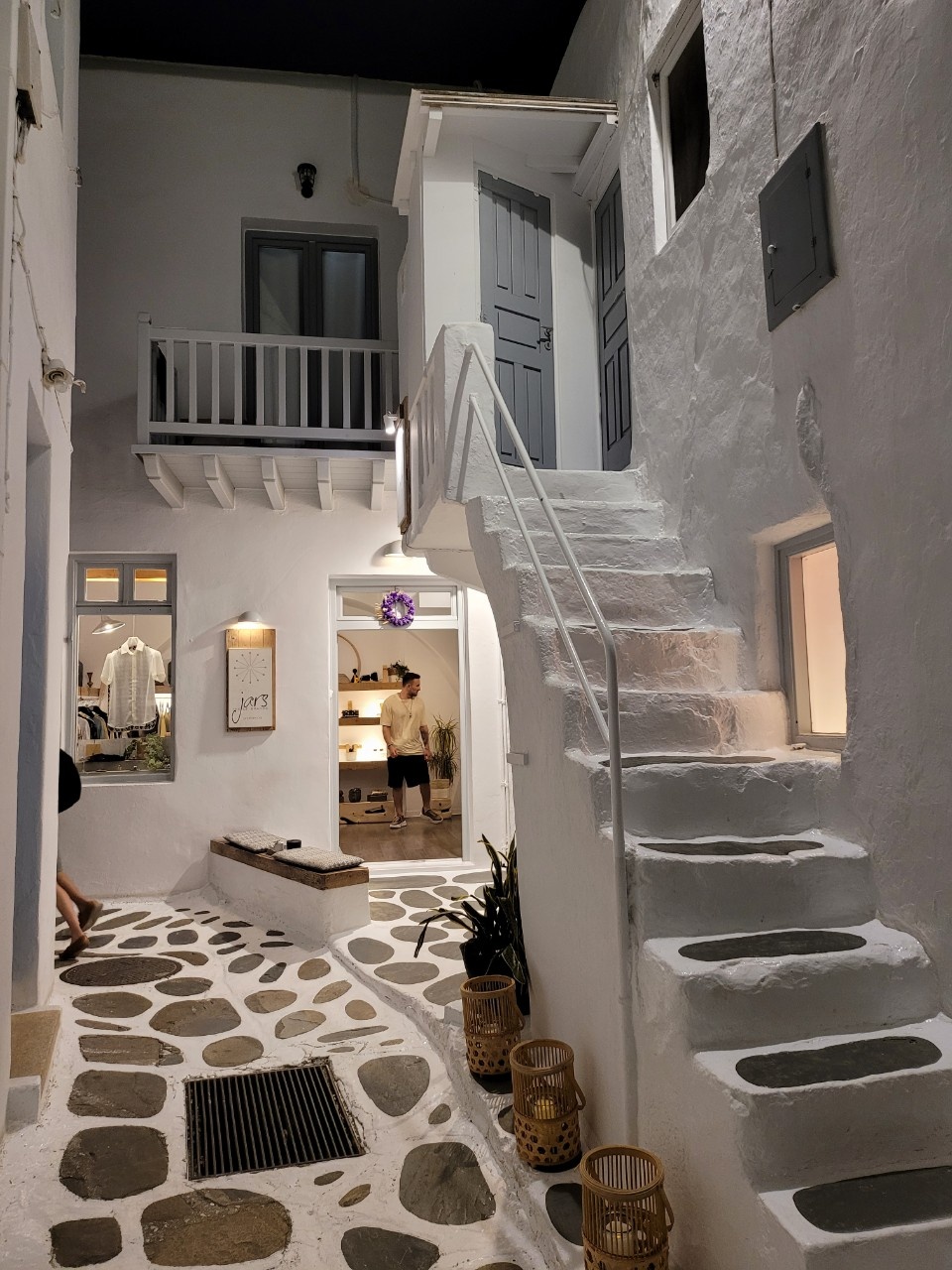 Khi đêm xuống, nơi này giống như khu phố Tây Phạm Ngũ Lão, quận 1, nhưng sát biển. Tất cả các căn nhà trong khu đều hai tầng và sơn trắng, cầu thang thường có màu xanh. Con đường lát đá và kẽ trắng đồng nhất và không có phương tiện cơ giới ra vào.