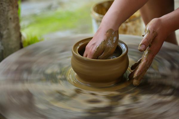 Từ xa xưa, khi chưa có những “điện” với “moteur”, những cư dân làng gốm nơi đây đã sáng tạo ra phương pháp đặc biệt để sản xuất. Họ dùng chính sức người để “chạy” chiếc bàn xoay - công cụ quan trọng nhất để sản xuất gốm.