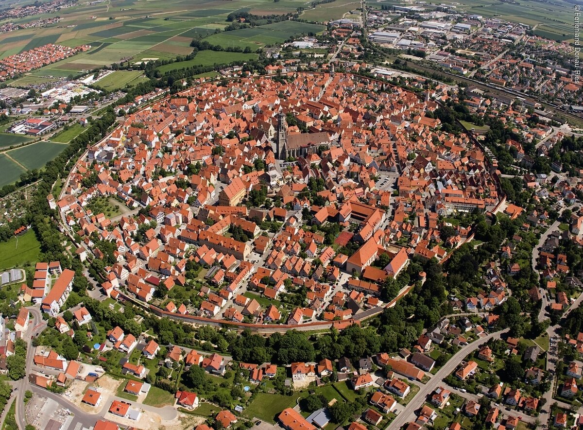 Nördlingen giống như mọi thị trấn đặc trưng của Đức với những ngôi nhà gỗ mái đỏ, những con hẻm rải sỏi và một chóp nhà thờ cao sừng sững giữa bấu trời Theo ước tính của các chuyên gia địa chất, 72.000 tấn kim cương đã tạo nên thị trấn Nördlingen và chỉ riêng Nhà thờ St Georgs - điểm du lịch nổi tiếng nhất ở trung tâm đã chứa xấp xỉ 5.000 carat. Hiện tượng kỳ thú này cũng đã được phát hiện ở một vài nơi khác trên thế giới, nhưng không nơi nào có số lượng hoặc nồng độ kim cương cao như Nördlingen.