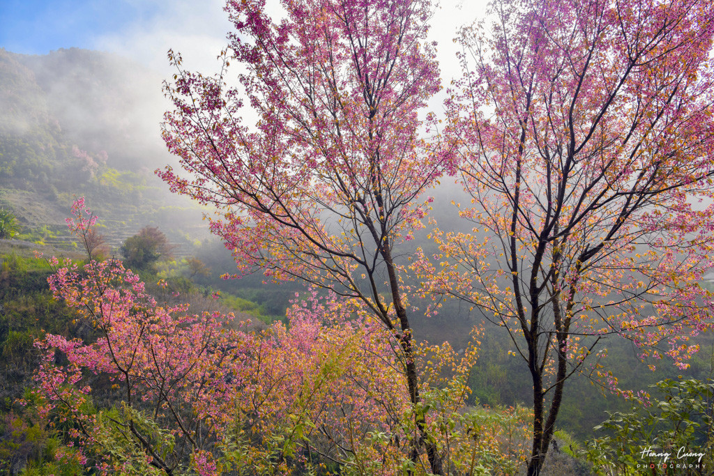 Tây Bắc những ngày cuối năm, trải khắp các sườn đồi lẫn hai bên đường đi là một màu hồng rực rỡ của hoa tớ dày.