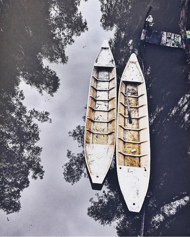 Ngồi trên những chiếc xuồng ba lá, len lỏi trong kênh rạch chằng chịt của rừng chàm. Bạn sẽ có cơ hội thả mình trong bốn bề xanh ngắt với những hàng cây tràm thẳng tít hai bên, dưới nước là lớp bèo trôi, không gian yên tĩnh, thỉnh thoảng văng vẳng tiếng chim hót dịu dàng biết bao. Nếu may mắn, bạn còn có thể bắt gặp những chú chim chẳng-sợ-ai mà đậu ngay thân cây hay khóm hoa bên bờ, khá hay ho đấy.