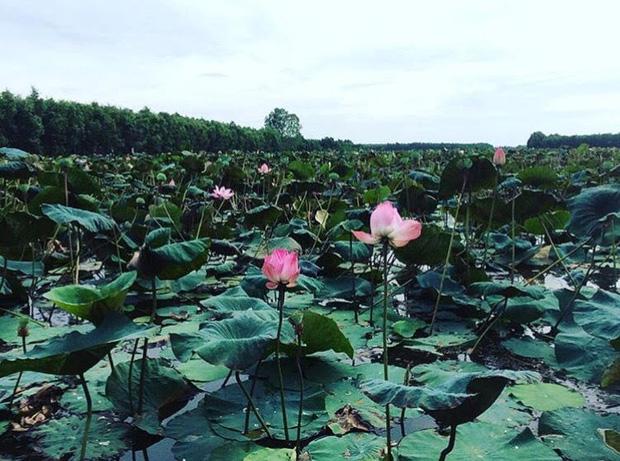 Khi đến trung tâm huyện Tháp Mười, đi tiếp theo con đường 845, từ xa xa bạn đã có thể nhìn thấy những cánh đồng sen rộng lớn lung linh, lấp lánh dưới ánh nắng trong của mùa-thu-miền Tây rồi. Những búp sen hồng phấn, sen lẫn lá xanh đẹp tuyệt vời. Hãy trải nghiệm hành trình trên một chuyến ghe, bạn có thể tự chèo hoặc thuê người chèo, đi vào giữa đông sen để có thể tận hưởng trọng vẹn vẻ đẹp thanh khiết ở nơi đây nhé.