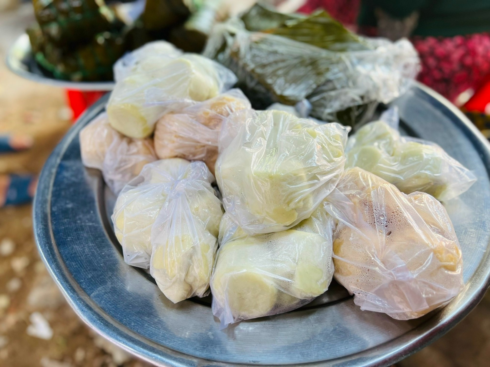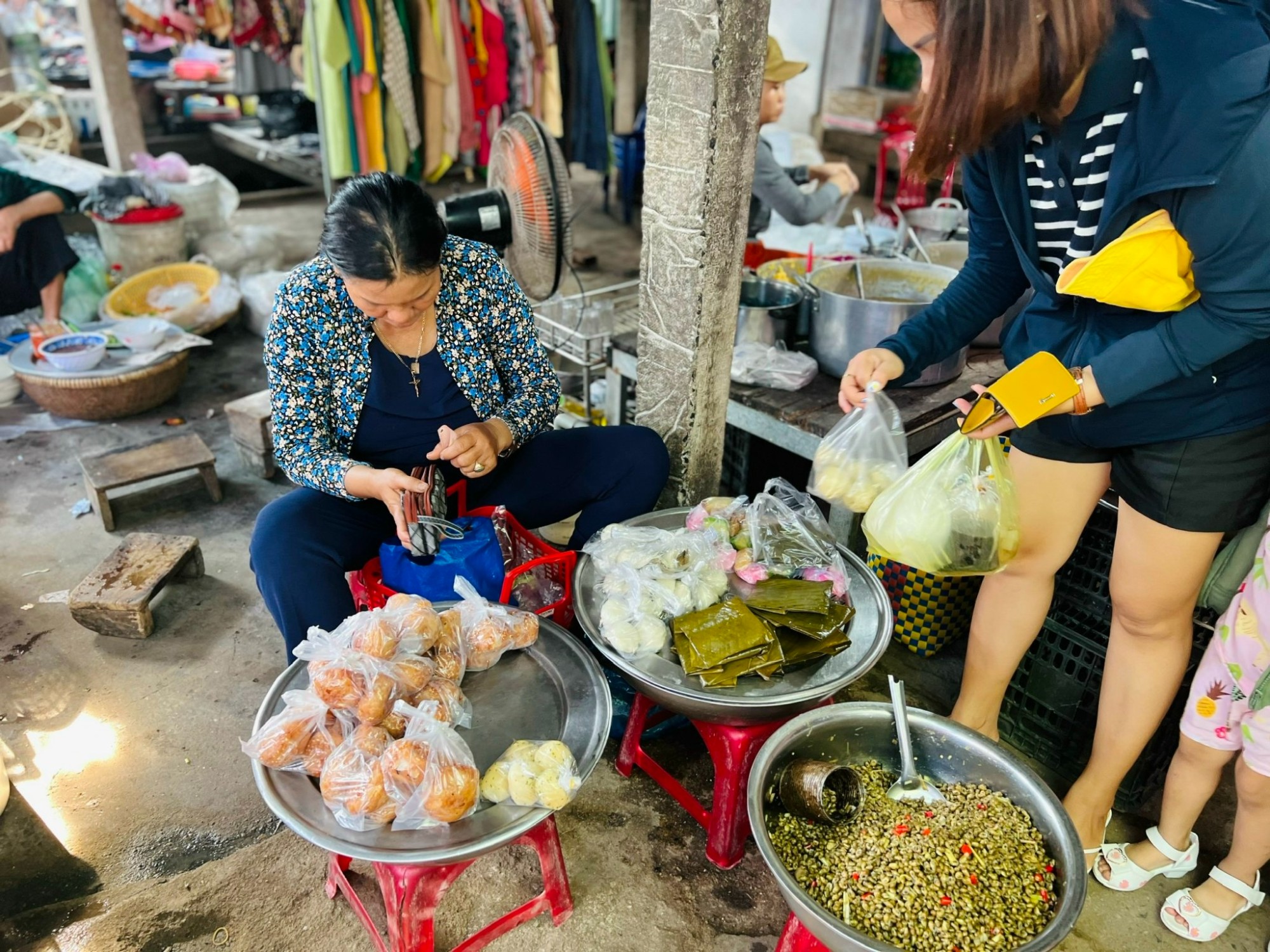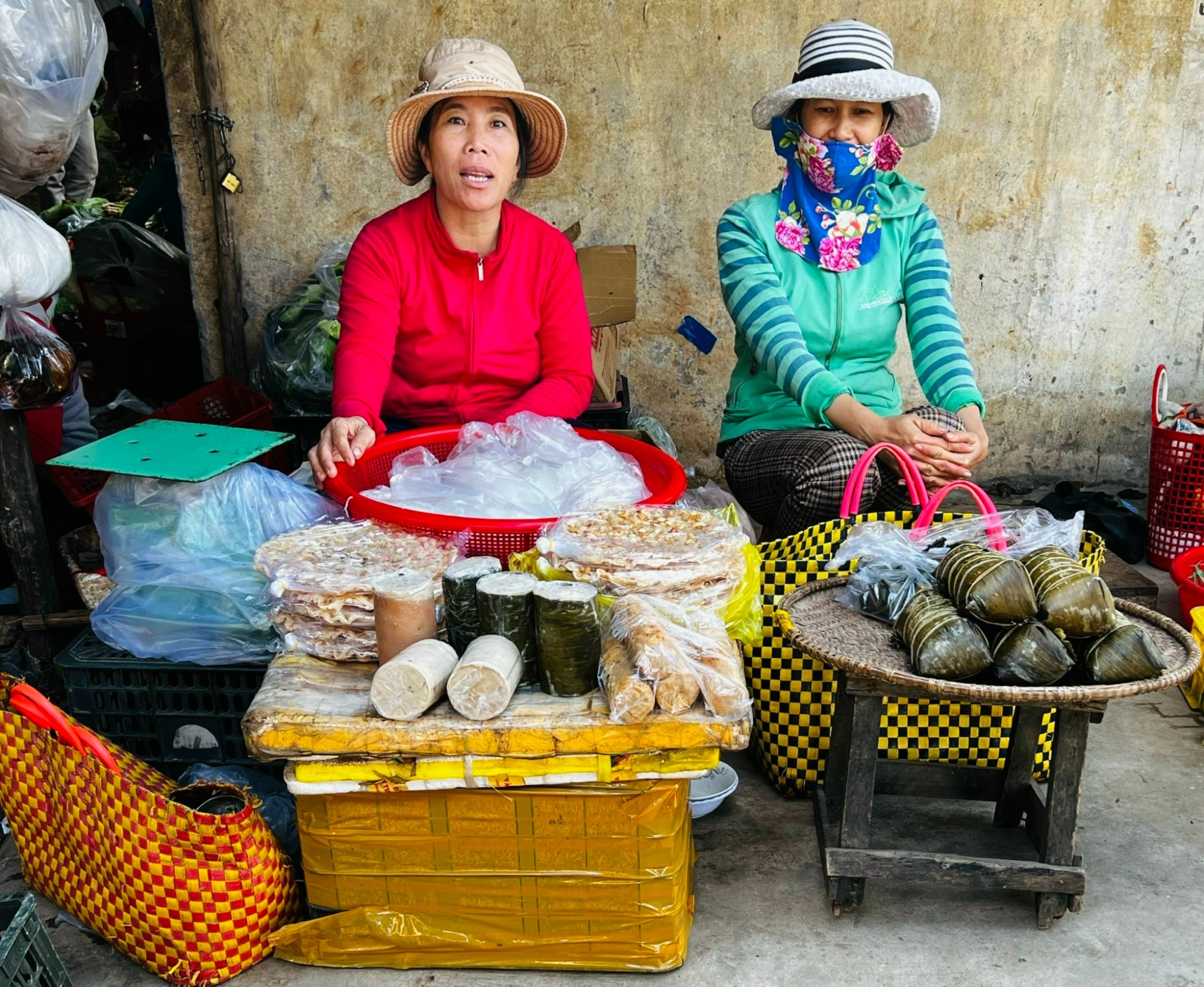Mang đậm hương vị chợ quê, nơi đây có rất nhiều mâm bánh gắn liền với tuổi thơ của biết bao thế hệ như bánh củ mì, bánh khoai, bánh tằm...