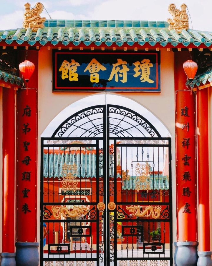 Cổng trước của ngôi miếu. (Ảnh: _spaceofjc_) Ngoài là nơi thờ tự, Quỳnh Phủ Hội Quán còn là địa điểm sinh hoạt chung của đồng bào người Hoa gốc Hải Nam. Cho đến thời gian gần đây, ngôi miếu còn trở thành địa điểm tham quan và chụp ảnh của nhiều du khách từ phương xa bởi kiến trúc bắt mắt của công trình.