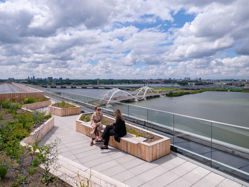 Tòa nhà được cấp chứng chỉ sinh thái bền vững với khả năng tạo ra nhiều năng lượng hơn mức tiêu thụ nhờ các kỹ thuật cách nhiệt hiệu suất cao, kính ba lớp và 2.200 m2 các tấm pin Mặt Trời được lắp đặt trên một "hòn đảo nổi" bên cạnh dự án.