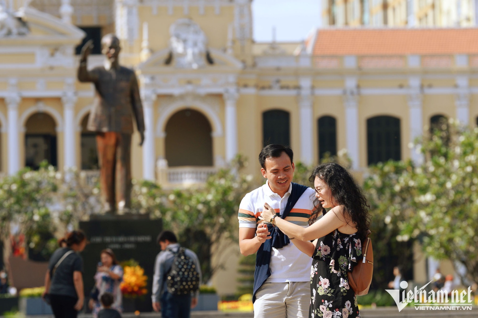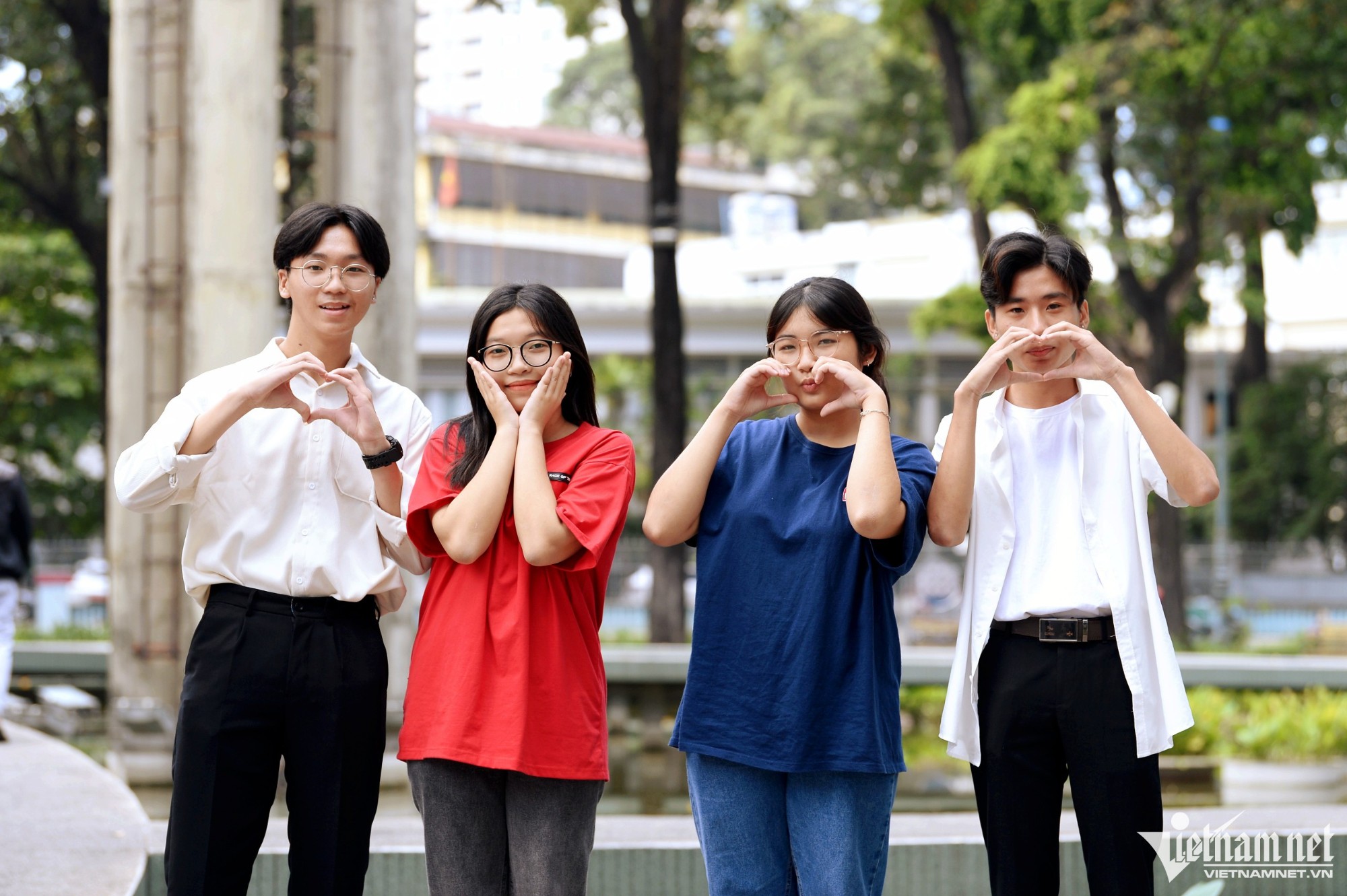 Bốn bạn trẻ Đạt, Dung, Hương, Phong (18 tuổi) đã đi từ Đồng Xoài, Bình Phước đến đây để cảm nhận không khí đầu năm mới ở TP Hồ Chí Minh. "Bọn em đi chơi để cho quen không khí ngày lễ, năm sau lên học đại học cho đỡ bỡ ngỡ", Dung cười nói.