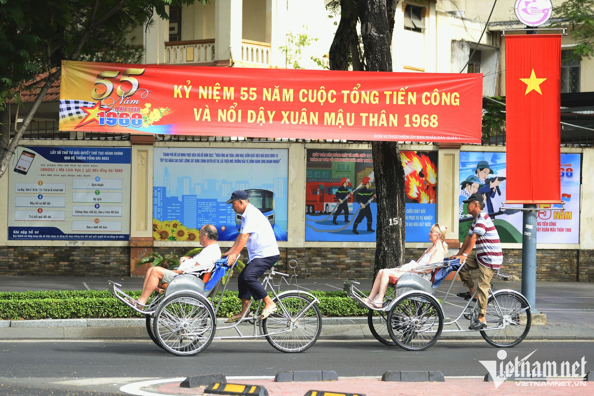 Dịp nghỉ Tết Dương lịch cũng là thời gian thành phố đón nhiều khách du lịch nước ngoài. Hôm nay, nhiều đoàn xích lô xuất hiện liên tục ở địa bàn quận 1.