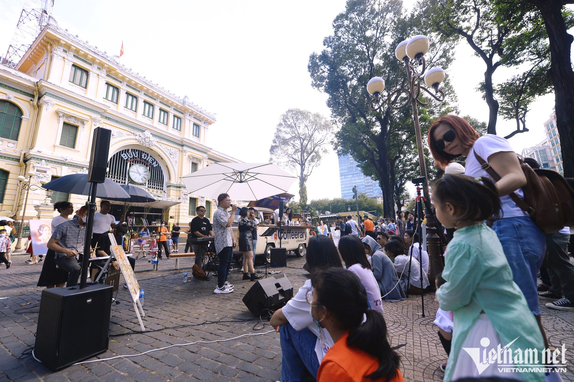 Tại đầu đường sách Nguyễn Văn Bình, một nhóm nhạc tự phát đang hát ca khúc Beautiful Sunday.