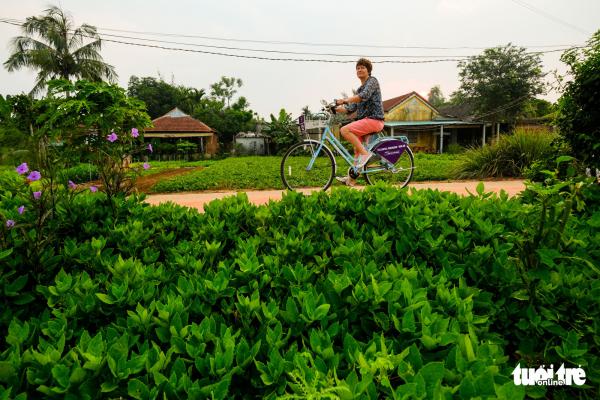 Du khách nước ngoài đến Hội An không thể không đến thăm làng rau một lần - Ảnh: GIA THỊNHLàng Trà Quế là một trong những vùng đất được khai phá cách đây hơn 400 năm. Danh xưng đầu tiên của Trà Quế là Nhự Quế, có ý rau thơm có nồng cay như cây quế. Theo cứ liệu được ghi chép tại làng, vào đầu thế kỷ 18, một vị vua triều Nguyễn du ngoạn trên sông Đế Võng và ghé vào thăm làng. Nghe tiếng rau mùi nơi đây, vua ăn và cảm nhận rau không chỉ cay thơm như quế mà còn có vị thơm mát của hoa trà, nên vua đã đổi danh xưng Nhự Quế thành Trà Quế.