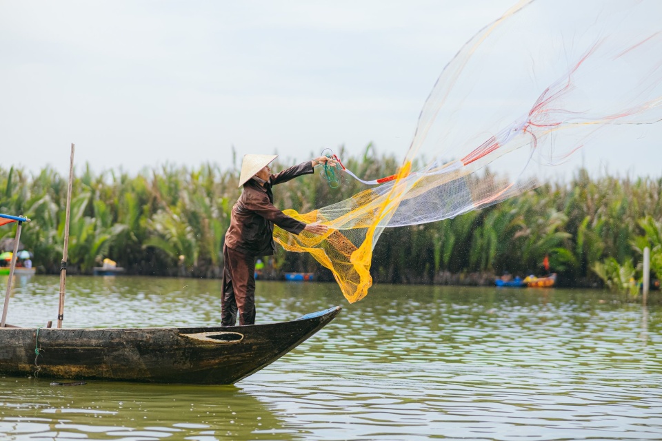 Vẻ đẹp khi ngư dân thả lưới bắt cá tôm. Ảnh: Duy Hậu. Ngoài ra, du khách sẽ có nhiều hoạt động thú vị khác tại rừng dừa như xem ngư dân trình diễn quăng lưới đánh bắt cá, làm đồ thủ công bằng lá dứa, tham gia các trò chơi dân gian và thưởng thức những món ngon đặc sản tại nhà dân.