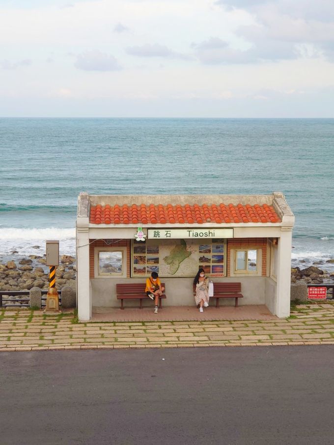 Khiêu Thạch là điểm check in "bỗng dưng hot" của giới trẻ Đài Loan. Ảnh: Đinh Gia Bảo Nếu muốn có ảnh toàn cảnh trạm xe buýt và tránh nguy hiểm vì đứng giữa đường để chụp ảnh khi nhiều phương tiện qua lại, hãy đi tới trạm xe buýt đối diện nằm ở trên cao. Đứng tại đây, du khách không chỉ an toàn, mà còn có thể phóng tầm mắt nhìn ra đảo Keelung phía xa, cũng như có view đẹp để chụp Khiêu Thạch.