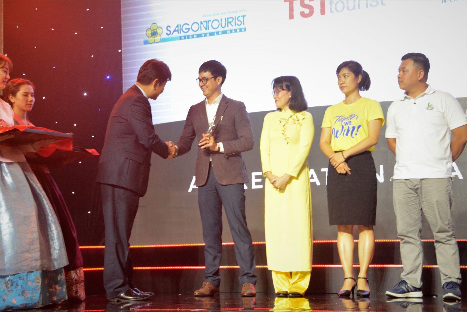 Ông Nguyễn Văn Thi - Trưởng phòng Khối Du lịch nước ngoài công ty TST tourist nhận giải thưởng đồng "Đối tác xuất sắc" năm 2017 của Tổng cục Du lịch Hàn Quốc KTO trao tặng.