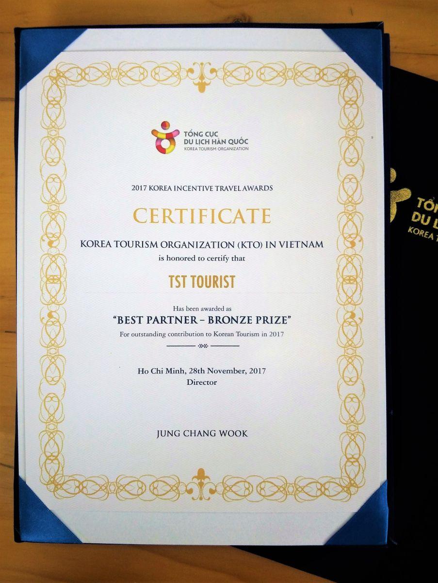 KTO đã trao kỷ niệm chương và giải đồng trong hạng mục "Đối tác xuất sắc" của KTO cho công ty TST tourist về những đóng góp to lớn trong năm 2017 và góp phần vào sự thành công chung nói trên.
