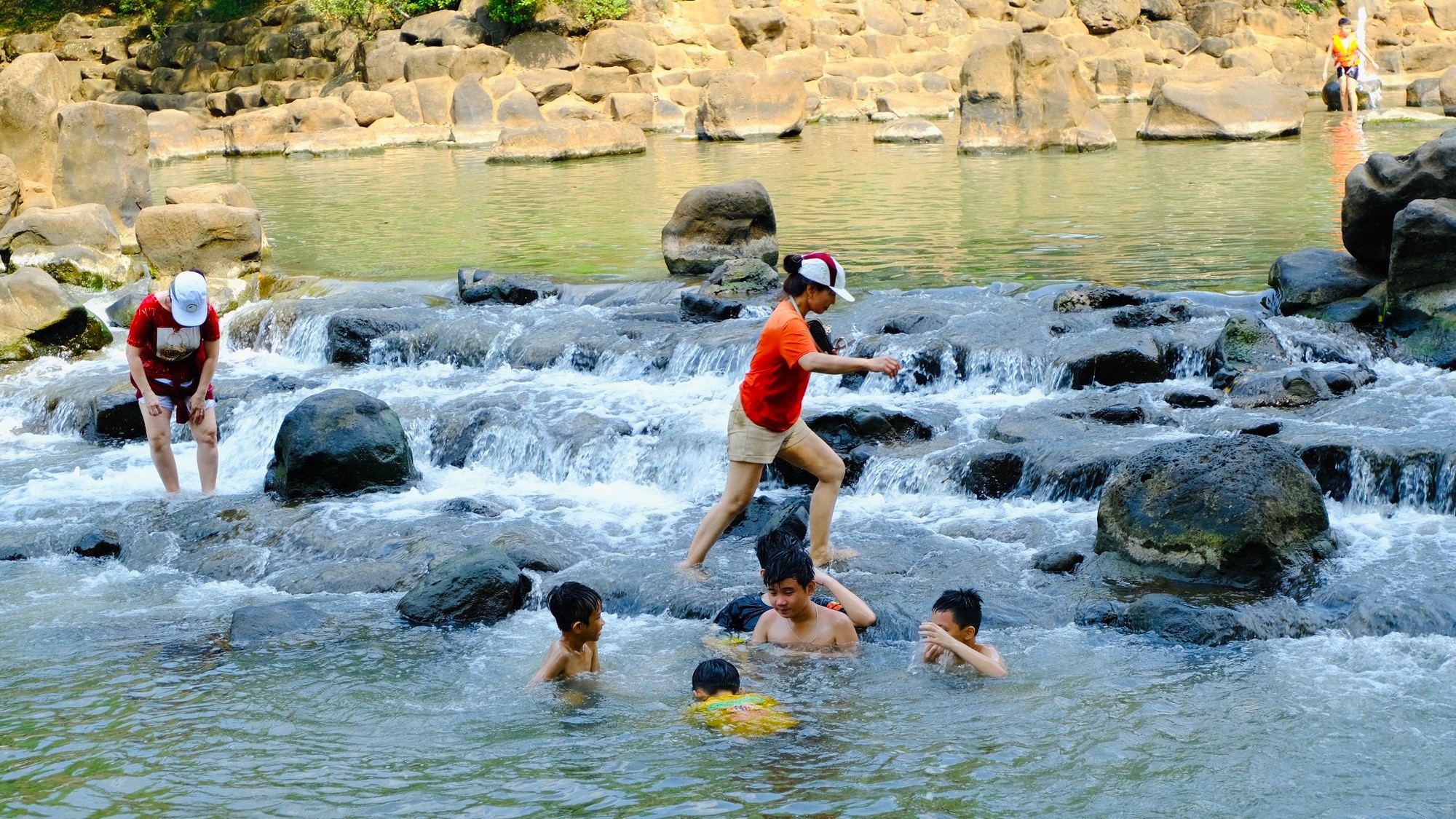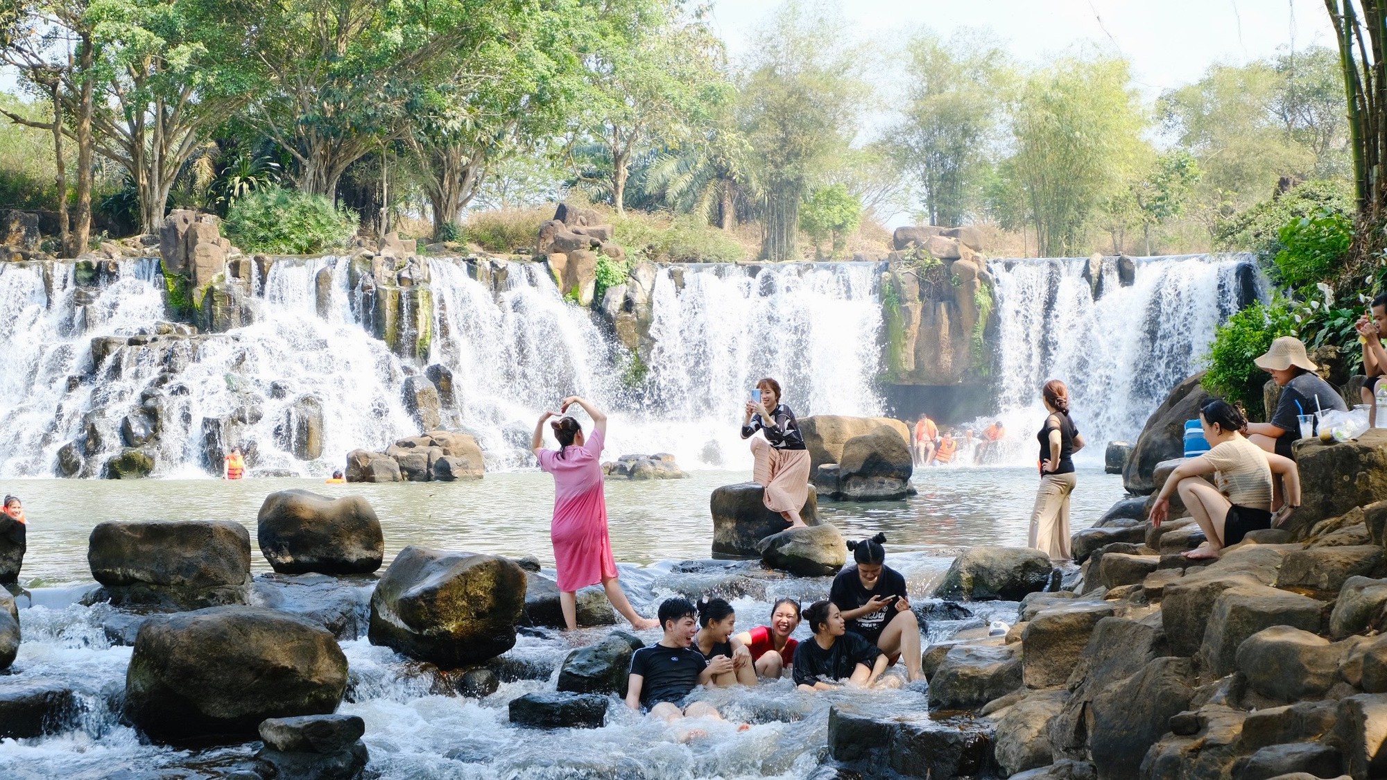 Dòng thác mát lành là điểm tránh nóng lý tưởng cho người dân TP.HCM trong những ngày cao điểm khô nắng này