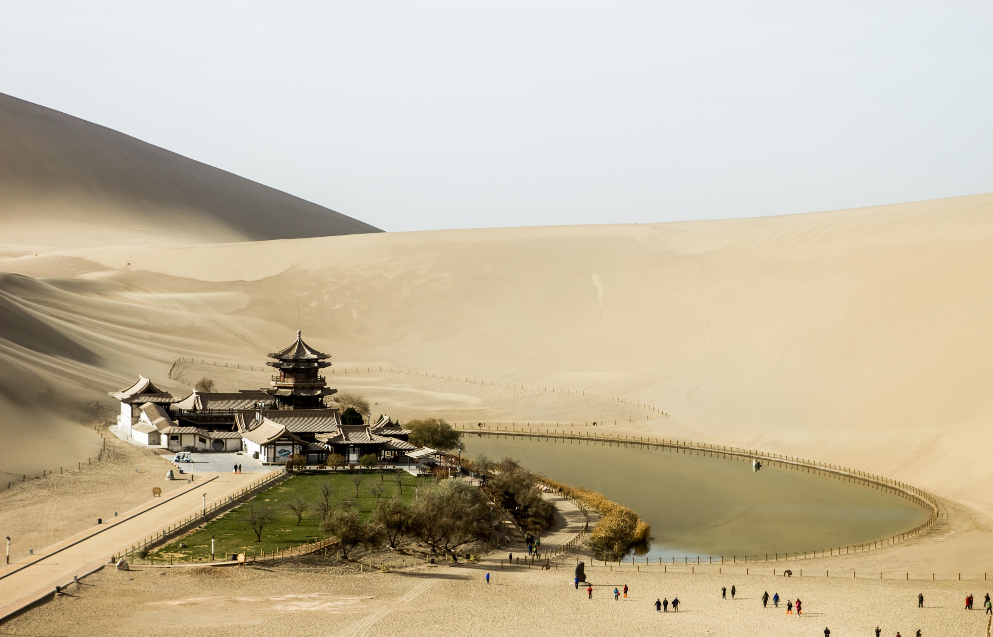 Giữa sa mạc khô cằn ở Đôn Hoàng còn có một ốc đảo Nguyệt Nha Tuyền xanh tươi và hồ nước ngọt hình trăng lưỡi liềm chưa bao giờ cạn gần 2.000 năm nay