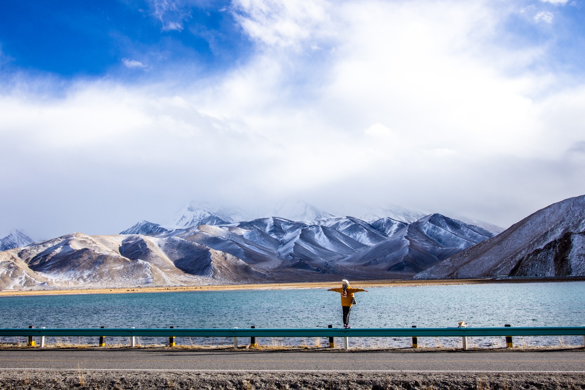 Hồ Karakul trên cao tốc Karakoram, đằng sau là dãy núi Muztagh