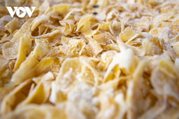 Sau khi chọn nguyên liệu thật kỹ, gừng được rửa sạch, cạo vỏ và bào thành lát mỏng. Với cách làm truyền thống, chủ yếu theo hộ gia đình nên công đoạn này khá vất vả, gừng cay nồng nên tay người làm dễ bị nóng rát.