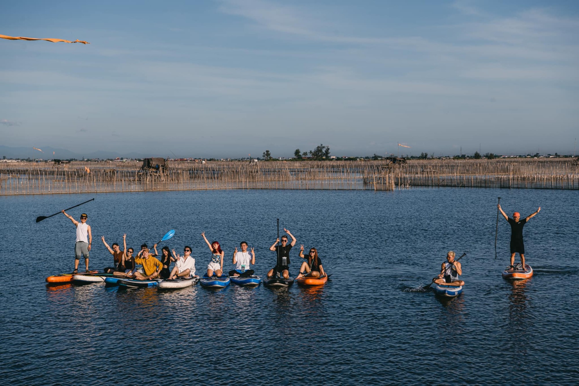 Sau khi ngắm bình minh, du khách sẽ được trải nghiệm cách đánh bắt hải sản của ngư dân, chèo sup trên đầm Chuồn và thưởng thức món bánh khoái cá kình và cá dìa - món ăn sáng đặc trưng của người địa phương - Ảnh: BẢO KHÁNH