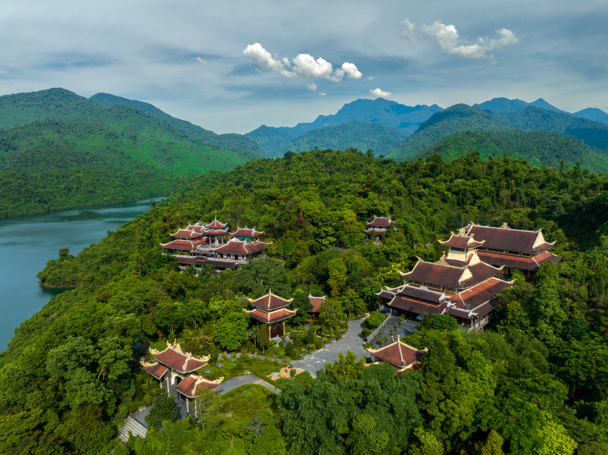 Thiền viện Trúc Lâm Bạch Mã được bao bọc bởi hồ Truồi, ngự trên ngọn núi Linh Sơn. Nơi đây khá hoang sơ và yên tĩnh, nếu có thời gian du khách có thể thong dong lễ Phật, ngắm cảnh sông nước, nghe tiếng chim hòa cùng tiếng mõ… - Ảnh: HACHI