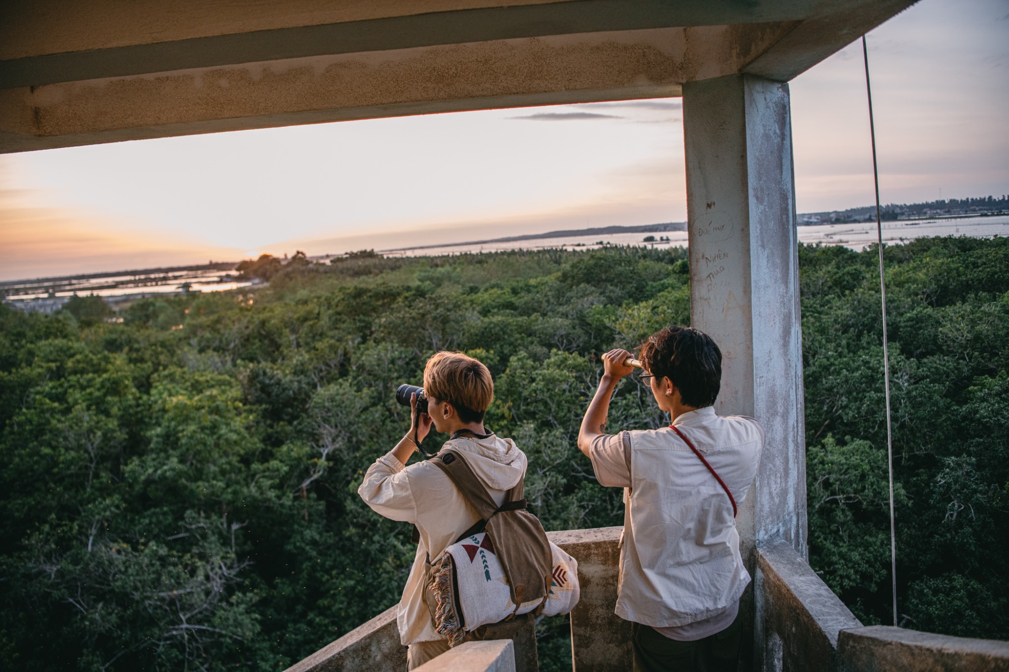 Ngoài vẻ đẹp nguyên sơ và bí ẩn, Rú Chá còn là một điểm đón hoàng hôn đầy choáng ngợp. Đứng trên đài quan sát giữa rừng, du khách sẽ được hít hà những ngọn gió vừa mát vừa trong lành, ngắm nhìn ánh hoàng hôn rực rỡ bao phủ lên toàn bộ khu rừng cũng như phá Tam Giang - Ảnh: HACHI