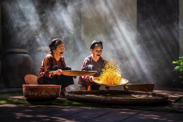 Hình ảnh bình yên bên cổng Mông Phụ của làng Đường Lâm. Đây là cổng làng cổ duy nhất còn sót lại ở khu vực Bắc BộChị Diệp thật lòng chia sẻ, có nhiều hình ảnh đã hiếm gặp trong đời sống hàng ngày, ví như việc các cụ già ngồi sảy thóc trước hiên nhà.